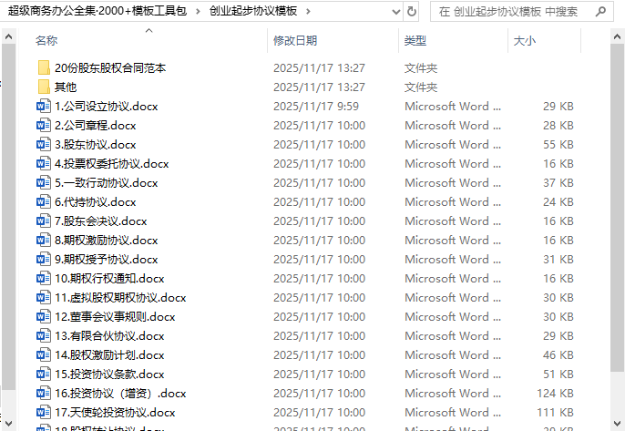 ✔ 2000+份文件,覆盖创业、职场、办公、合同、股权、行政全流程