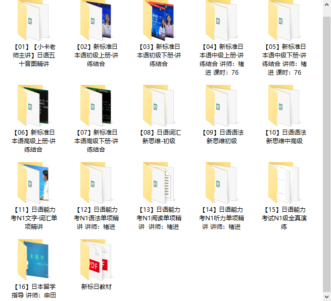 ●基础奠基阶段(01-03):由小卡老师主讲五十音图,打下纯正发音基础;随后完整讲解《新标日初级》上下册,构建最核心的日常会话和基础语法框架。